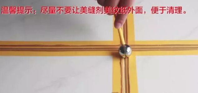 注意:不管是滿填還是半填都要先把瓷磚縫隙清潔干凈然后保持干燥才可以進行下一步,填完后半小時清理一下縫隙兩邊的美縫劑殘留。